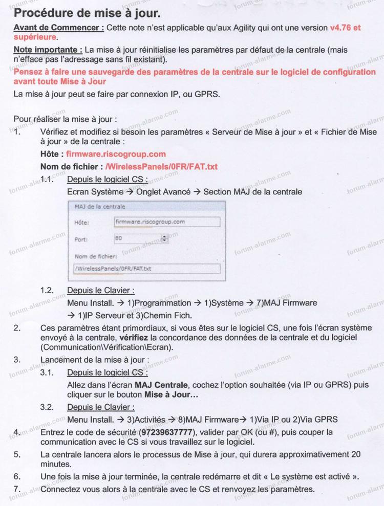 consulter ce sujet Mise à jour centrale Risco Agility 3 sur le forum AlarmeBonjour.