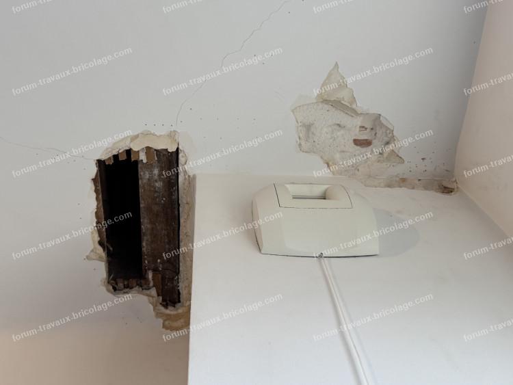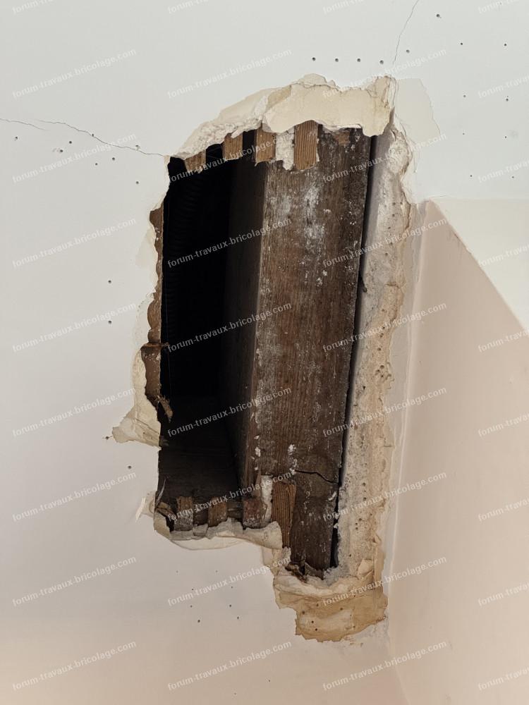 Je sollicite votre aide pour savoir quelle serait la meilleure solution pour reboucher proprement ces trous (surtout le plus grand), sachant que je ne souhaite pas installer de faux plafond.